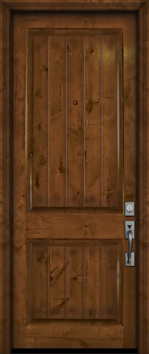 WDMA 42x96 Door (3ft6in by 8ft) Exterior Knotty Alder 42in x 96in 2 Panel V-Grooved Estancia Alder Door