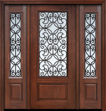 WDMA 56x80 Door (4ft8in by 6ft8in) Exterior Cherry IMPACT | 80in 1 Panel 3/4 Arch Lite Charleston Door /2side