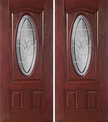 WDMA 60x80 Door (5ft by 6ft8in) Exterior Cherry Oval Three Panel Double Entry Door BT Glass Attributes Table