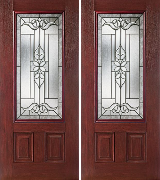 WDMA 60x80 Door (5ft by 6ft8in) Exterior Cherry 3/4 Lite Two Panel Double Entry Door CD Glass Attributes Table