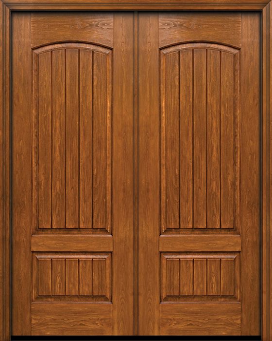 WDMA 72x96 Door (6ft by 8ft) Exterior Cherry 96in Plank Two Panel Double Entry Door