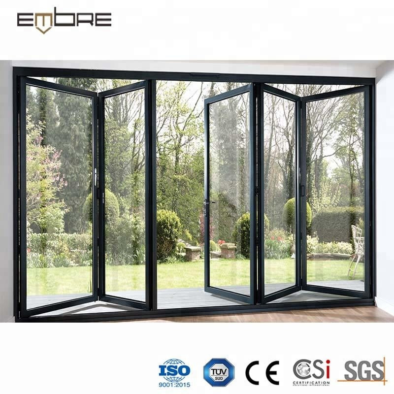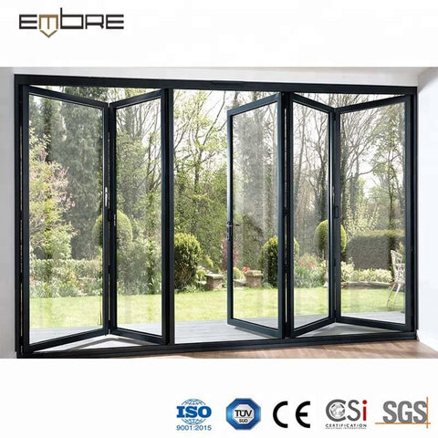 Product Description Factory Price Sliding Folding French Door Aluminum Profile Material: aluminum alloy 6063-T5 Color: gray/champagne color/wood grain/white/black or other customized colors Thickness: 1.1mm/1.2mm/1.4mm/1.5mm/1.6mm/1.8mm/2.0mm/2.5mm, etc Surface finish A. powder coating B. electrophoresis C. heat transfer for wood grain D. PVDF coating Glazing Material : single glass, double glass, tempered glass, floating glass, insulating glass, reflective glass, laminated glass, low-E glass, smart glass Color : clear / gray / green / frosted, etc Single : 4mm to 12mm Double : 4mm+7A/15A/20A+4mm, 5mm+12A/15A/16A/27A+5mm, etc Triple : 5mm+6A+5mm+6A+5mm,etc Sealing EPDM rubber and silicone sealant Hardware SIEGENIA, HOPPE, HOPO, Kinlong, Chinese brand or German brand, etc Package Protection foam+heat contracted plastic film/carton/wooden packing/Metal pallet or depending on clients' special requirements Company Information Founded in 2008, Guangdong Embre Doors...