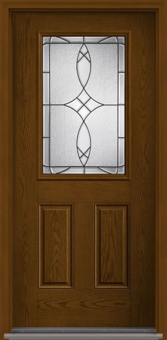 WDMA 34x80 Door (2ft10in by 6ft8in) Exterior Oak Blackstone Half Lite 2 Panel Fiberglass Single Door