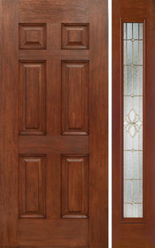 WDMA 42x80 Door (3ft6in by 6ft8in) Exterior Cherry Six Panel Single Entry Door Sidelight Full Lite KP Glass