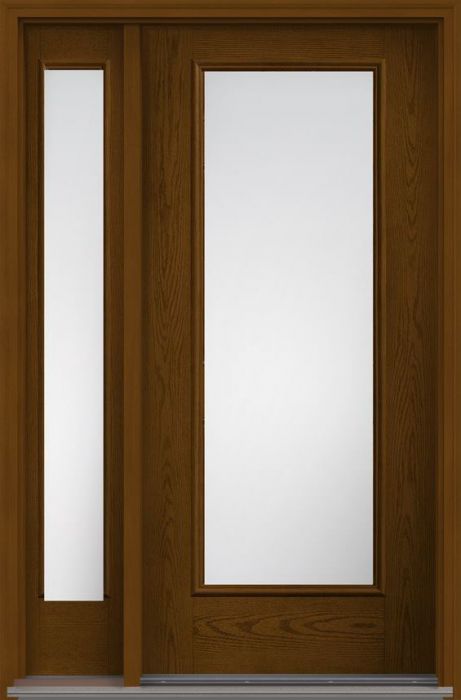 WDMA 44x80 Door (3ft8in by 6ft8in) Patio Oak Clear Full Lite W/ Stile Lines Fiberglass Exterior Door 1 Side