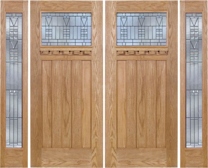 WDMA 108x80 Door (9ft by 6ft8in) Exterior Oak Biltmore Double Door/2 Full-lite side w/ B Glass