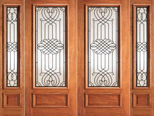 WDMA 108x84 Door (9ft by 7ft) Exterior Mahogany Double Door with Two Sidelights Celtic Ironwork Glass