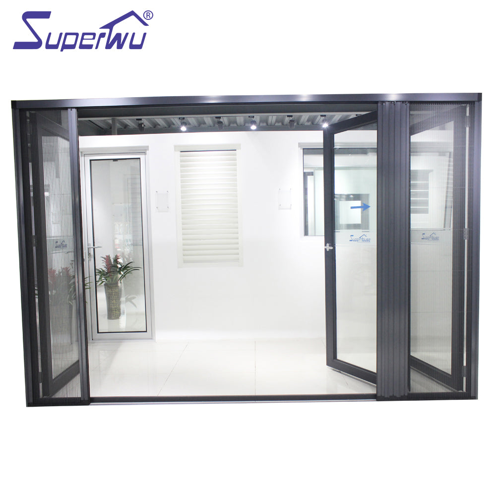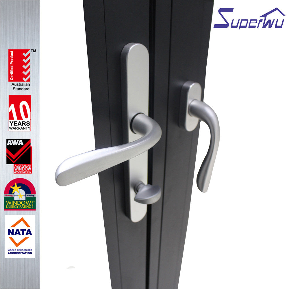Australian standard AS2047 Cheap interior double glazed aluminium accordion folding doors Product Description Profiles 6063-T5 high quality thermal break aluminium profile, thickness 2.0 mm 6063-T5 high quality non-thermal break aluminium profiles, thickness 2.0 mm PVC/UPVC profiles Glass Double toughened glazing:5mm+12A+5mm (A:Air);5mm+12A+5mm tinted; 5mm+12A+5mm Low-E; 5mm+27A+5mm Single toughened glazing: 3/4/5/6/8/10/12/15/19/21//6.38/11.76mm Laminated glazing: 5mm+0.76+5mm, 5mm+0.38+5mm...