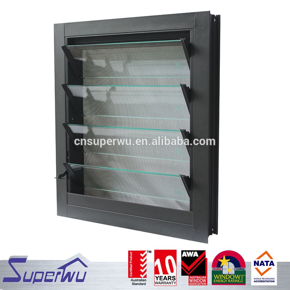 Aluminium glass blades louvers window/ jalousie window manufacturer good price Product Description Profiles 6063-T5 high quality thermal break aluminium profile, thickness 2.0 mm 6063-T5 high quality non-thermal break aluminium profiles, thickness 2.0 mm PVC/UPVC profiles Glass Double toughened glazing:5mm+12A+5mm (A:Air);5mm+12A+5mm tinted; 5mm+12A+5mm Low-E; 5mm+27A+5mm Single toughened glazing: 3/4/5/6/8/10/12/15/19/21//6.38/11.76mm Laminated glazing: 5mm+0.76+5mm, 5mm+0.38+5mm...