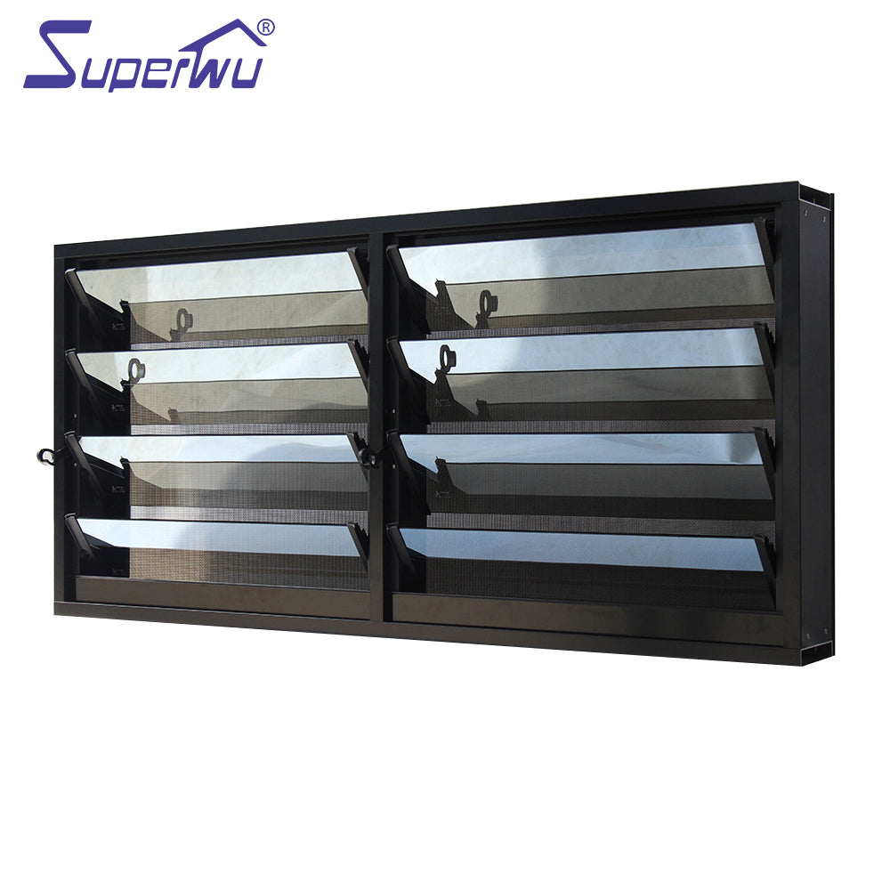 Superwu most popular glass louver window Product Description Profiles 6063-T5 high quality thermal break aluminium profile, thickness 2.0 mm 6063-T5 high quality non-thermal break aluminium profiles, thickness 2.0 mm PVC/UPVC profiles Glass Double toughened glazing:5mm+12A+5mm (A:Air);5mm+12A+5mm tinted; 5mm+12A+5mm Low-E; 5mm+27A+5mm Single toughened glazing: 3/4/5/6/8/10/12/15/19/21//6.38/11.76mm Laminated glazing: 5mm+0.76+5mm, 5mm+0.38+5mm Hardware German brand:...