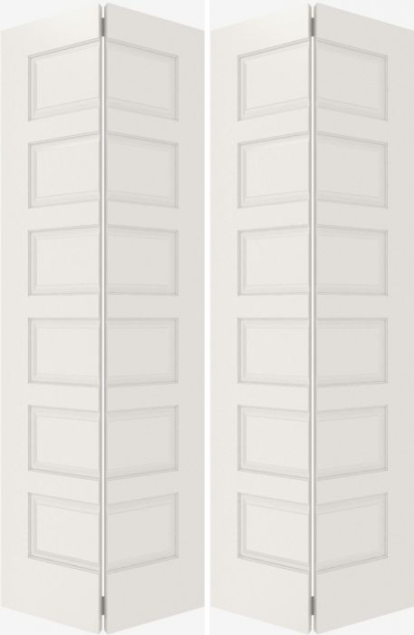 WDMA 20x80 Door (1ft8in by 6ft8in) Interior Bifold Smooth 6100 MDF 6 Panel Double Door