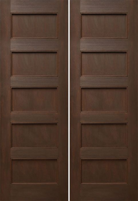 WDMA 48x96 Door (4ft by 8ft) Interior Mahogany 96in Five Flat Panels Square Sticking w/Reveal Double Door