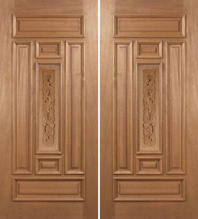 WDMA 60x80 Door (5ft by 6ft8in) Exterior Mahogany Narrow Double Door Carved Panel