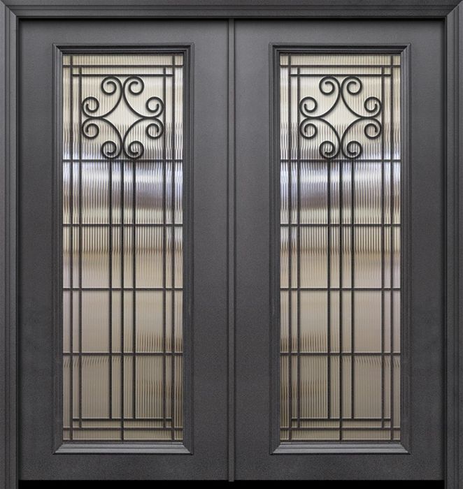 WDMA 64x80 Door (5ft4in by 6ft8in) Exterior 80in ThermaPlus Steel Novara 1 Panel Full Lite GBG Double Door
