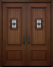 WDMA 64x96 Door (5ft4in by 8ft) Exterior Mahogany 96in Double 2 Panel Square Door with Speakeasy / Clavos Attributes Table
