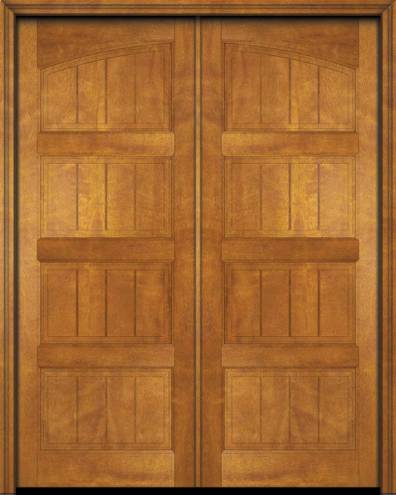 WDMA 68x84 Door (5ft8in by 7ft) Exterior Barn Mahogany 4 Panel V-Grooved Plank Rustic-Old World or Interior Double Door