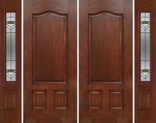 WDMA 84x80 Door (7ft by 6ft8in) Exterior Cherry Three Panel Double Entry Door Sidelights GR Glass