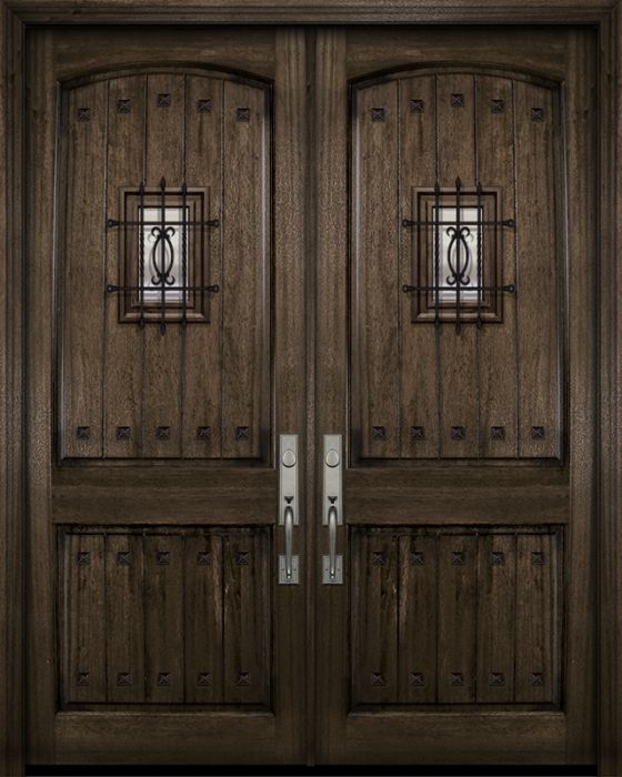 WDMA 84x96 Door (7ft by 8ft) Exterior Mahogany 42in x 96in Double Arch 2 Panel V-Grooved DoorCraft Door with Speakeasy / Clavos Attributes Table
