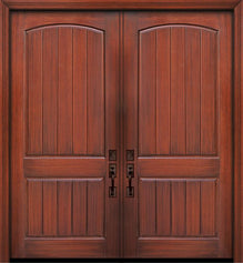 WDMA 84x96 Door (7ft by 8ft) Exterior Mahogany 42in x 96in Double Arch 2 Panel V-Grooved DoorCraft Door with Speakeasy / Clavos
