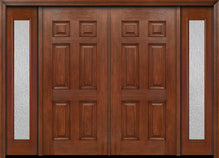WDMA 88x80 Door (7ft4in by 6ft8in) Exterior Cherry Six Panel Double Entry Door Sidelights 1/2 Lite Rain Glass