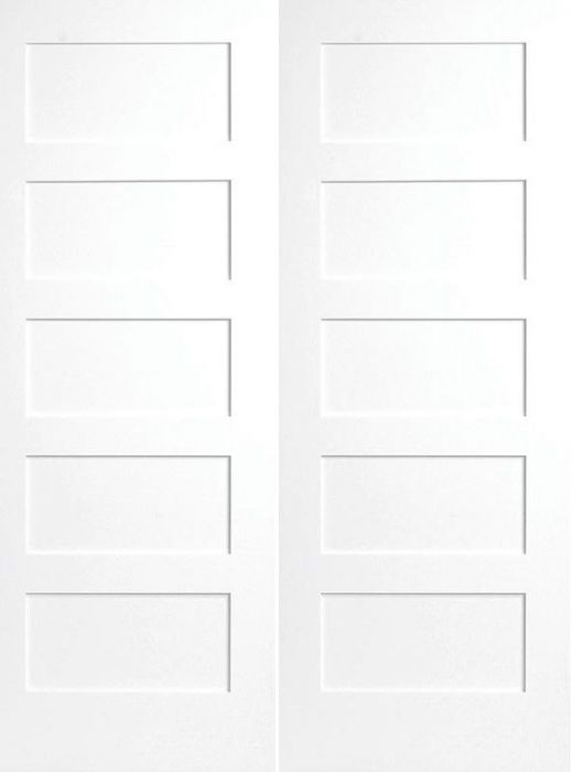 WDMA 48x80 Door (4ft by 6ft8in) Interior Swing Smooth 80in 5 Panel Primed shaker 1-3/8in Double Door