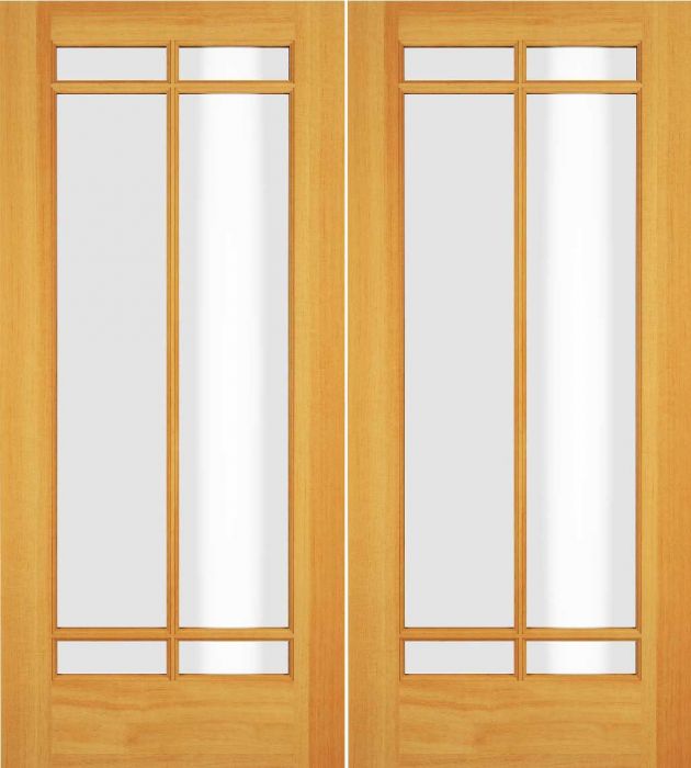 WDMA 52x96 Door (4ft4in by 8ft) Exterior Swing Poplar Wood Full Lite Prairie Arts and Craft Double Door