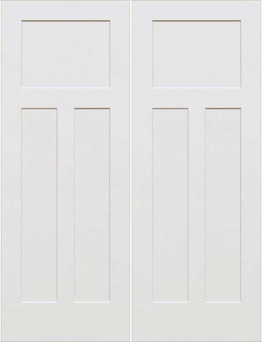 WDMA 64x96 Door (5ft4in by 8ft) Interior Swing Smooth 96in 3-Panel Craftsman Primed Double Door
