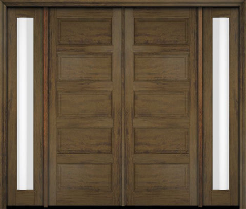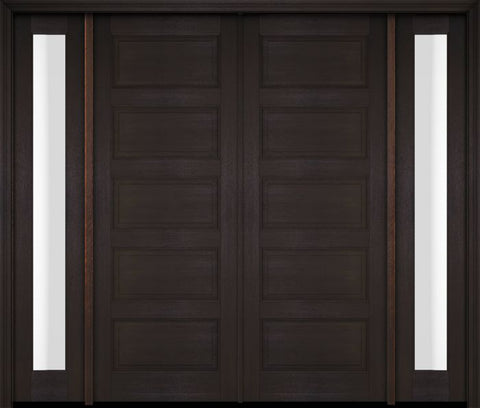WDMA 68x78 Door (5ft8in by 6ft6in) Exterior Swing Mahogany 5 Raised Panel Solid Double Entry Door Sidelights