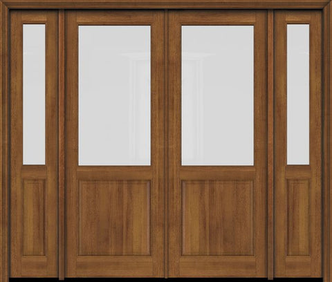 WDMA 76x80 Door (6ft4in by 6ft8in) Exterior Swing Mahogany 1/2 Lite Double Entry Door Sidelights