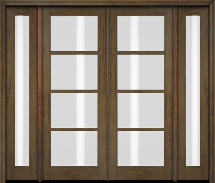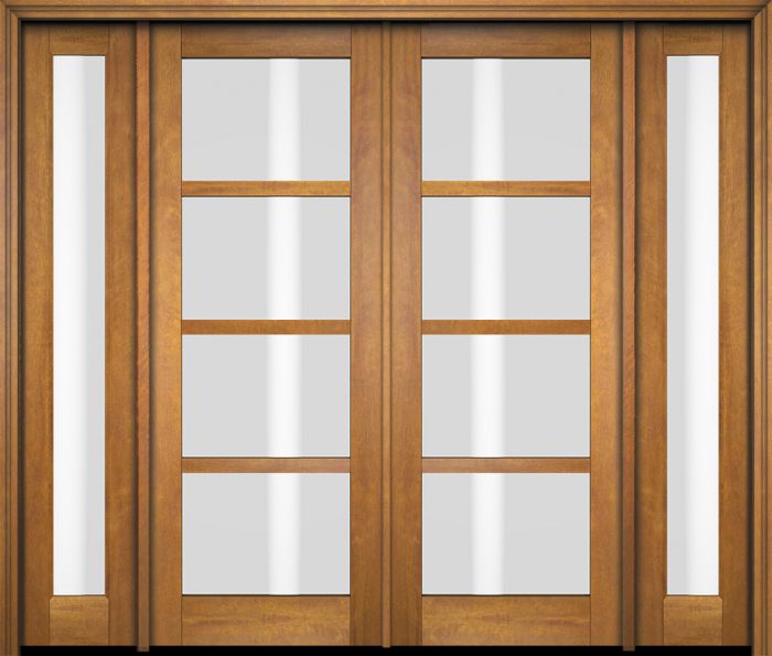 WDMA 76x80 Door (6ft4in by 6ft8in) Exterior Swing Mahogany 4 Lite Windermere Shaker Double Entry Door Sidelights
