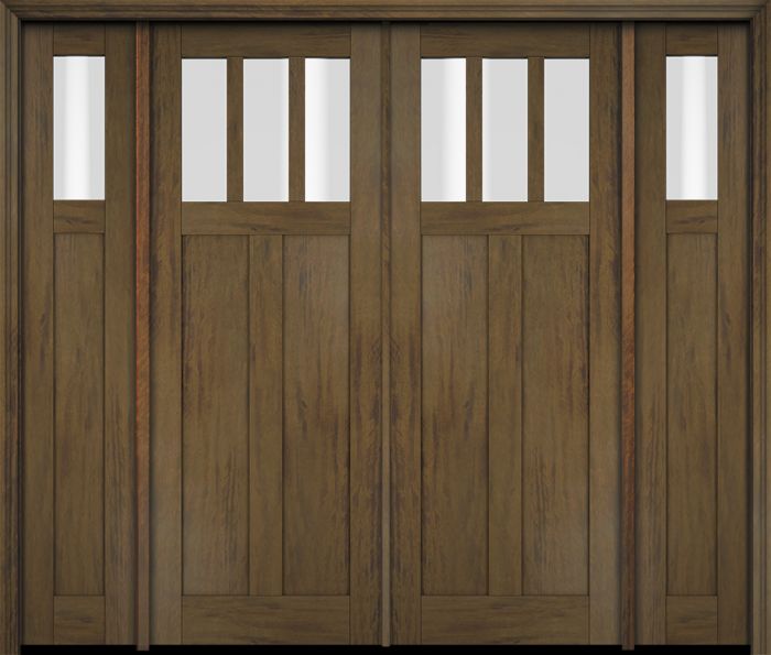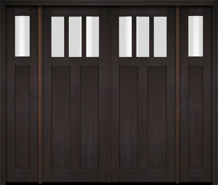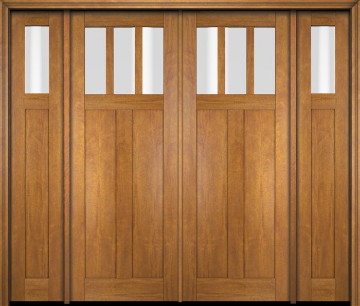 WDMA 86x80 Door (7ft2in by 6ft8in) Exterior Swing Mahogany 3 Horizontal Lite Craftsman Double Entry Door Sidelights