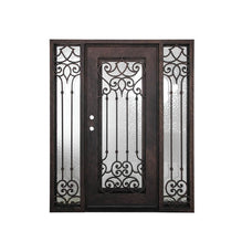 China WDMA Luxury Arch Design Rustic Wrought Cast Iron Glass Entrance Door Gate For Garage