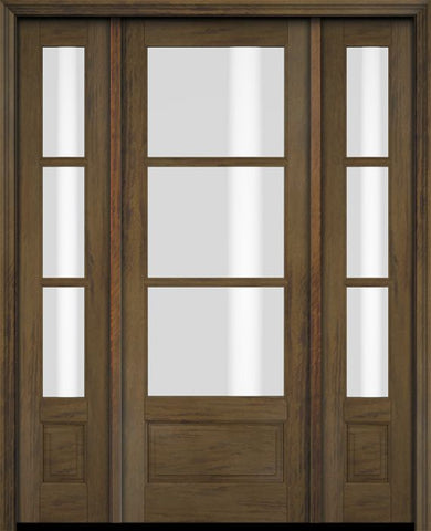 WDMA 52x96 Door (4ft4in by 8ft) Exterior Swing Mahogany 3/4 3 Lite TDL Single Entry Door Sidelights