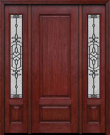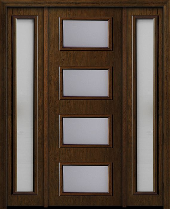 WDMA 54x96 Door (4ft6in by 8ft) Exterior Cherry 96in Contemporary Four Lite Single Fiberglass Entry Door Sidelights