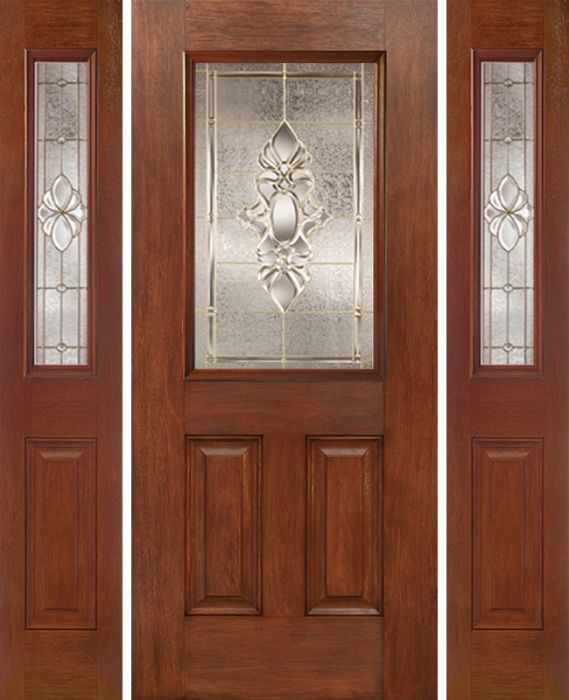 WDMA 58x80 Door (4ft10in by 6ft8in) Exterior Mahogany Half Lite 2 Panel Single Entry Door Sidelights HM Glass