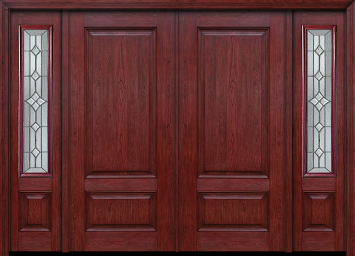 WDMA 84x80 Door (7ft by 6ft8in) Exterior Cherry Two Panel Double Entry Door Sidelights Windsor Glass