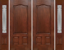 WDMA 88x80 Door (7ft4in by 6ft8in) Exterior Cherry Two Panel Double Entry Door Sidelights Pembrook Glass