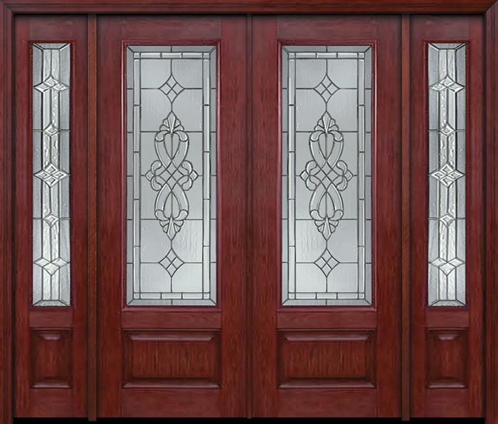 WDMA 88x96 Door (7ft4in by 8ft) Exterior Cherry 96in 3/4 Lite Double Entry Door Sidelights Windsor Glass