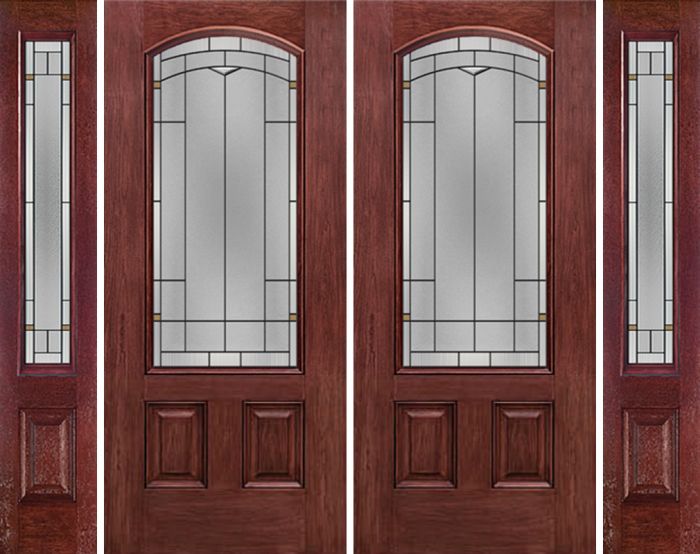WDMA 96x80 Door (8ft by 6ft8in) Exterior Cherry Camber 3/4 Lite Two Panel Double Entry Door Sidelights TP Glass