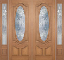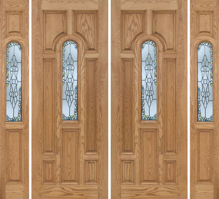WDMA 96x96 Door (8ft by 8ft) Exterior Oak Carrick Double Door/2side w/ Tiffany Glass - 8ft Tall