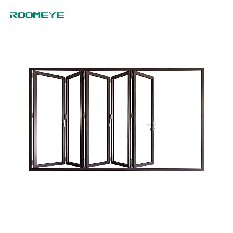 Product Description Bi-folding door is suitable for both commercial and residential construction. Multi- configuration provides you more choices. Low threshold design realizes barrier free passage. Product Name Roomeye aluminum bi folding door( 80 series) Material Aluminum thermal break profile 2.0mm-6063-T5 Color Customized Roller Type Stainless steel Glass Double tempered glass(5mm+20A+5mm)...