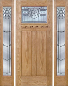 WDMA 60x80 Door (5ft by 6ft8in) Exterior Oak Pearce Single Door/2 Full-lite side w/ B Glass