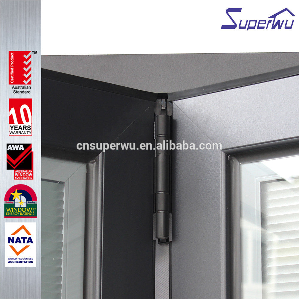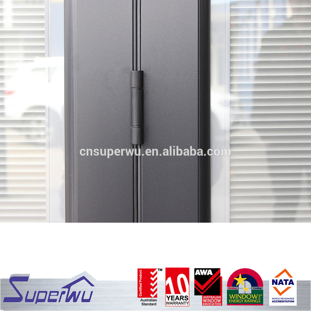 NFRC north American standard commercial thermal broken powder coating aluminum glass bi fold door with built in blinds on China WDMA