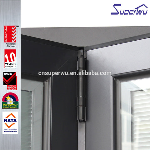 NFRC north American standard commercial thermal broken powder coating aluminum glass bi fold door with built in blinds Product Description Profiles 6063-T5 high quality thermal break aluminium profile, thickness 2.0 mm   6063-T5 high quality non-thermal break aluminium profiles, thickness 2.0 mm PVC/UPVC profiles Glass Double toughened glazing:5mm+12A+5mm (A:Air);5mm+12A+5mm tinted; 5mm+12A+5mm Low-E; 5mm+27A+5mm  Single toughened...