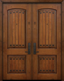 WDMA 64x96 Door (5ft4in by 8ft) Exterior Knotty Alder 96in Double 2 Panel Arch Door with Clavos