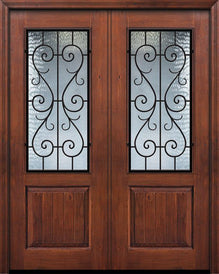 WDMA 64x96 Door (5ft4in by 8ft) Exterior Knotty Alder 96in Double 1 Panel 2/3 Lite Moderna Steel Grille Door