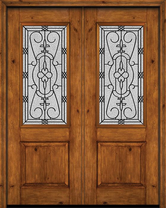 WDMA 72x96 Door (6ft by 8ft) Exterior Knotty Alder 96in Alder Rustic Plain Panel 2/3 Lite Double Entry Door Jacinto Glass