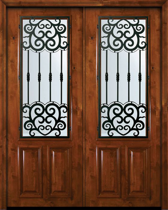 WDMA 72x96 Door (6ft by 8ft) Exterior Knotty Alder 36in x 96in Double 2/3 Lite Barcelona Alder Door