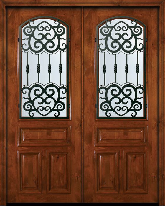 WDMA 72x96 Door (6ft by 8ft) Exterior Knotty Alder 36in x 96in Double Arch Lite Barcelona Alder Door