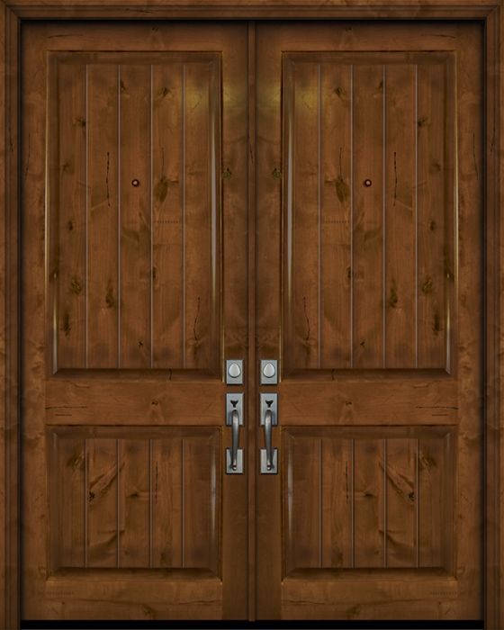 WDMA 84x96 Door (7ft by 8ft) Exterior Knotty Alder 42in x 96in Double 2 Panel V-Grooved Estancia Alder Door